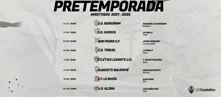 El CD Castellón arranca este mes de julio la temporada 21.22 con la mentalidad de trabajar muy duro, con ambición y humildad, para tratar de hacer una buena campaña. El equipo de Sergi Escobar iniciará el próximo 20 de julio con pruebas médicas su trabajo de pretemporada, con la mente puesta en arrancar al máximo nivel a partir del 28-29... Leer más