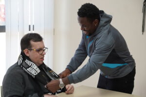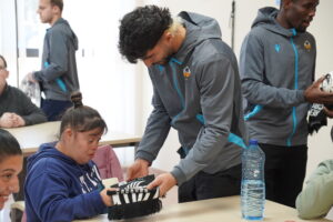Los jugadores y jugadoras del CD Castellón: Amir Abedzadeh, Kenneth Mamah, Jetro Willems, Thomas van den Belt, Aida Samit, Silvia Tomás han acudido por tercer año consecutivo a las instalaciones de Afanias Castellón con motivo del inicio de las fiestas navideñas. Los componentes de la asociación se han mostrado entusiasmados y han agradecido la visita.