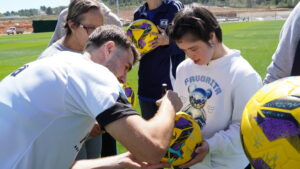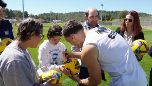 Como recuerdo de la jornada, cada uno de los asistentes recibió una pelota de regalo, que fue firmada en directo por todos los jugadores, poniendo el broche a una visita marcada por la cercanía y la ilusión.