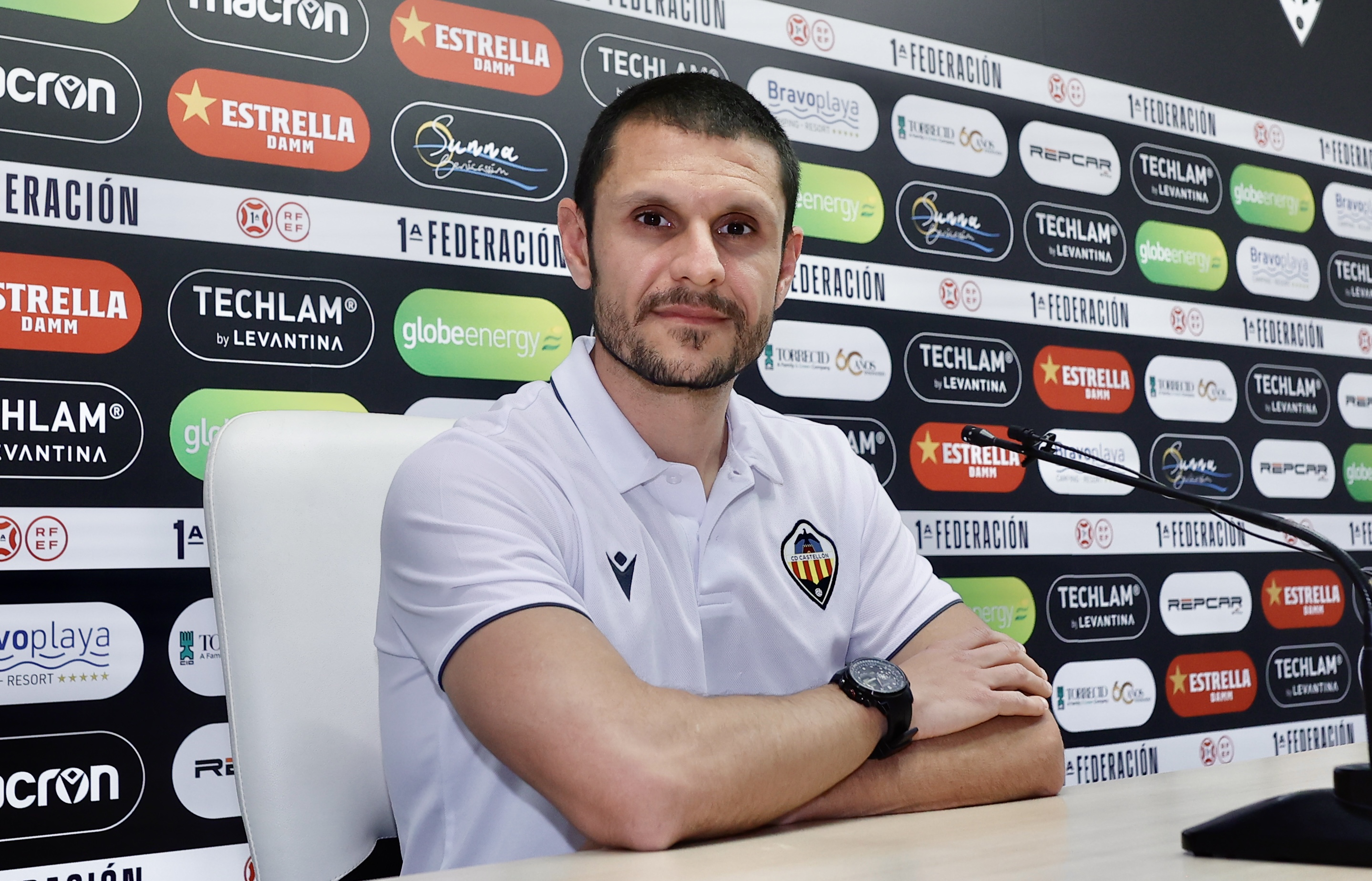 Albert Rudé ha comparecido hoy en la sala de prensa de Castalia para realizar la rueda de prensa de su presentación como entrenador del CD Castellón. Acompañado por todo su cuerpo técnico, el nuevo míster albinegro ha declarado: «Me defino como una persona sencilla y fácil. El fútbol es de los jugadores, ellos son los protagonistas, nos toca ayudar, guiar y liderar a través la confianza y los conceptos»