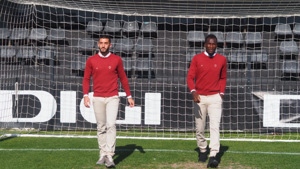 Borja Martínez y Yac Diori ejercieron de modelos por un día sobre el césped de Castalia para posar con las prendas diseñadas por Alessandro Sacco para el CD Castellón, con el escudo bordado en la parte del corazón y en el otro costado un bordado de la propia marca. Prendas con diseño y fabricación 100% España, 100% Castellón, duraderas, con un precio atractivo y la mejor atención al cliente.