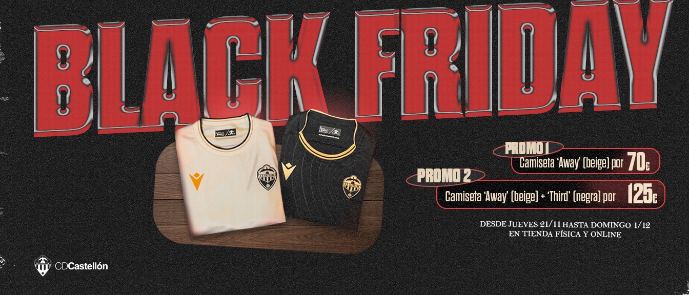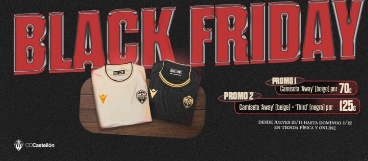 El CD Castellón ha lanzado su campaña de Black Friday para 2024. A partir del día 21 de noviembre y hasta el día 1 de diciembre, día en el que el Málaga CF visitará el SkyFi Castalia y terminará la promoción. Desde el club se llevarán a cabo algunas acciones para incentivar los colores del CD Castellón en el último tramo del año 2024. La promoción estará disponible en la tienda online y en la Tenda Albinegra del SkyFi Castalia.