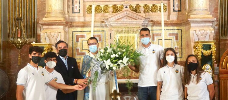 El CD Castellón realiza la tradicional ofrenda a la Virgen del Lledó con la presencia del femenino, el filial y el juvenil