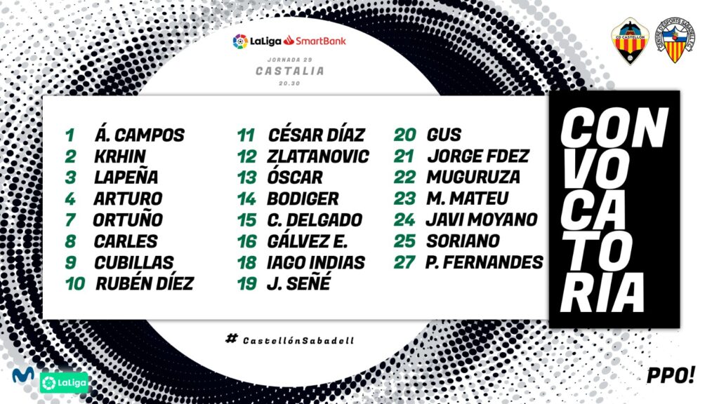 Castalia vuelve a abrir sus puertas este sábado con motivo de la 29ª jornada de LaLiga SmartBank para el duelo entre el CD Castellón y el CE Sabadell, donde nuestro equipo luchará para seguir con la línea ascendente de juego y resultados de las últimas jornadas.