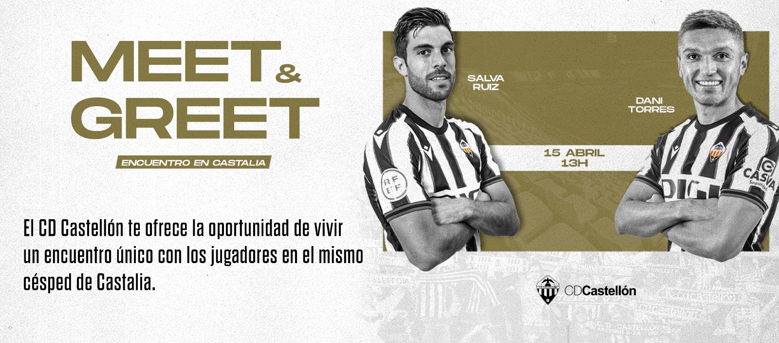 Los jugadores también quieren sentir de más cerca todavía el aliento de la afición. Por eso si eres abonado o abonada del C.D. Castellón, te invitamos a ser protagonista de un encuentro en Castalia el próximo viernes 15 de abril a las 13 horas con Salva Ruiz y Dani Torres con el objetivo de darles fuerza en este tramo final de temporada y poder hacerles tu propia pregunta.