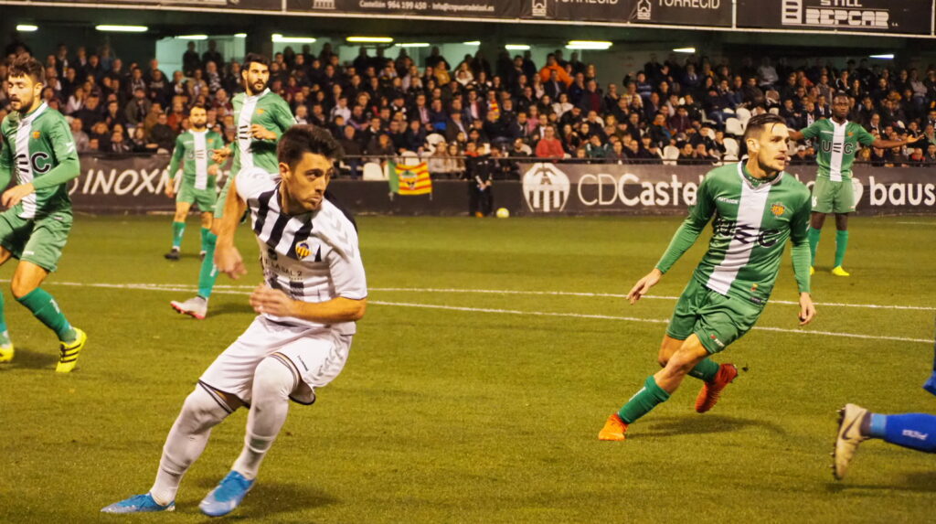 Durante los primeros compases del encuentro el conjunto albinegro ya daba el primer aviso. Era Rafa Gálvez quien a punto estaba de adelantar en el marcador a los ‘orelluts’ tras un saque de esquina. La primera aproximación de la UE Cornellà llegaba en el 20’, pero Álvaro Campos detenía el esférico sin problemas . En el 38’ Víctor conseguía el primer tanto del enfrentamiento tras un brillante disparo desde la frontal. El CD Castellón se marchaba al descanso con victoria en Castalia.
