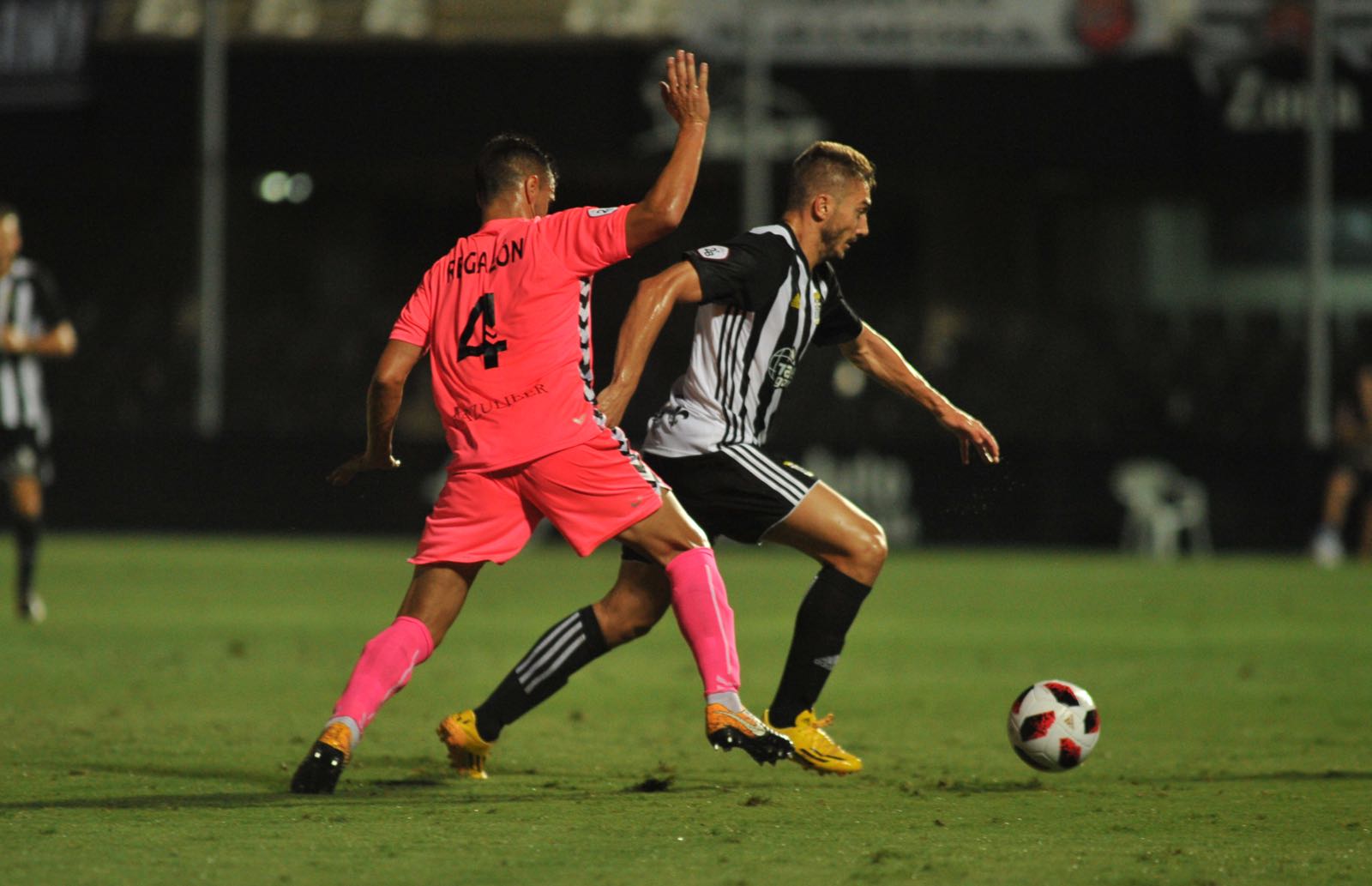 En la primera parte, el CD Castellón tuvo sus mejores minutos de la pretemporada ante un rival de su misma categoría. Con la idea de hacerse fuertes desde atrás, Escobar probó en el Cartagonova, por primera vez, a Castells y Rafa Gálvez juntos en el centro del campo. Esto se tradujo en una fuerte solvencia defensiva del equipo. José Carlos tuvo la ocasión más clara de los albinegros en los primeros compases del encuentro, pero fue Máyor el que consiguió poner por delante a los ‘orelluts’ con un perfecto cabezazo casi imparable. El gol dio confianza al conjunto de Castalia, que se gustó y se sintió cómodo a la hora de llegar a la portería contraria. No obstante, a falta de algo menos de un cuarto de hora para el descanso, el Cartagena se volvió a meter en el partido después de que Satrústegui tocara involuntariamente un balón dentro del área y Aketxe transformara la pena máxima en gol.