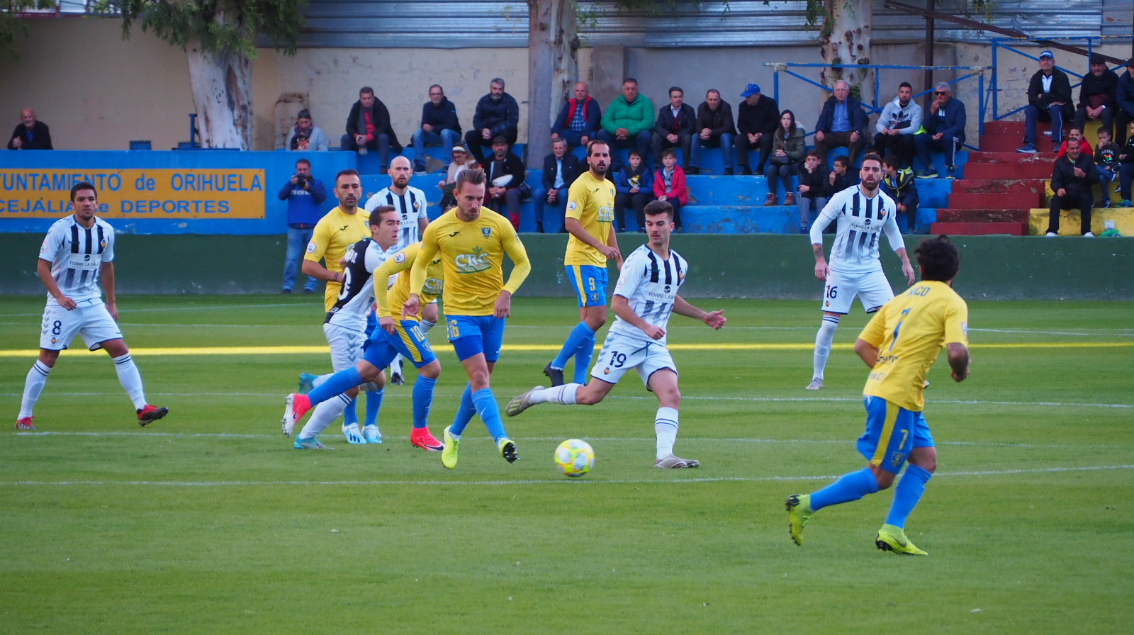 Tras el descanso el conjunto ‘escorpión’ supo anular las virtudes de los de Óscar Cano y volvió a ponerse por delante en el marcador. Cano dio entrada a Serra, Iñigo y Alcaina para dotar de más recursos al ataque, pero el Orihuela, bien plantado en su campo y más aún después de quedarse con un jugador menos con la expulsión de Amondarain, supo mantener la ventaja. En la recta final Marc Castells puso el 2-2 definitivo con un gol calcado al que anotó hace cuatro temporadas con la albinegra, sumando un punto que vale su peso en oro para seguir líderes en la tabla.