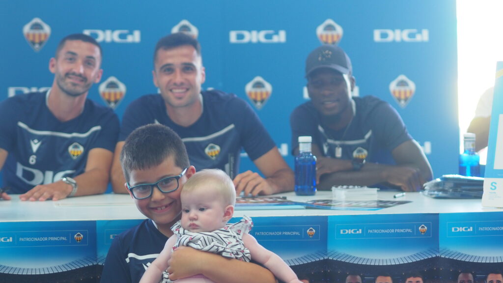 Durante la sesión en el stand de DIGI en Media Markt Castellón se pudo ver la felicidad de los niños y niñas que miraban asombrados a los jugadores del CD Castellón. Estos firmaron camisetas, balones, gorras, posters, cromos, etc.