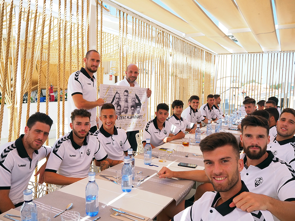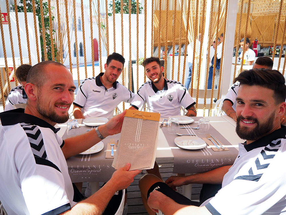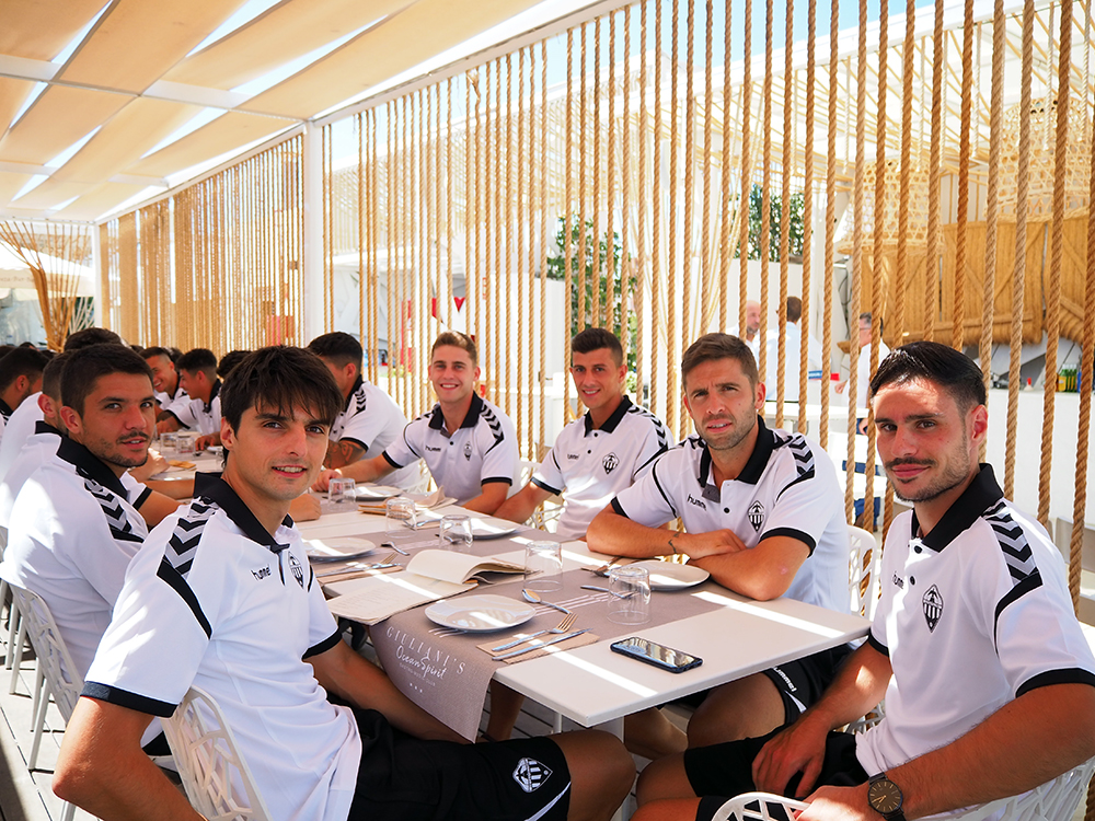 Este miércoles, Giulani’s ha invitado a toda la plantilla del CD Castellón, junto al total del cuerpo técnico y de la directiva, a una comida de hermandad en la que Álvaro Amores, propietario del establecimiento y fiel seguidor ‘orellut’, tuvo el detalle de invitar a toda la plantilla, además de dedicarles unas palabras alentadoras para que victorias, como las del Sabadell, no dejen de llegar y enorgullecer a la afición.