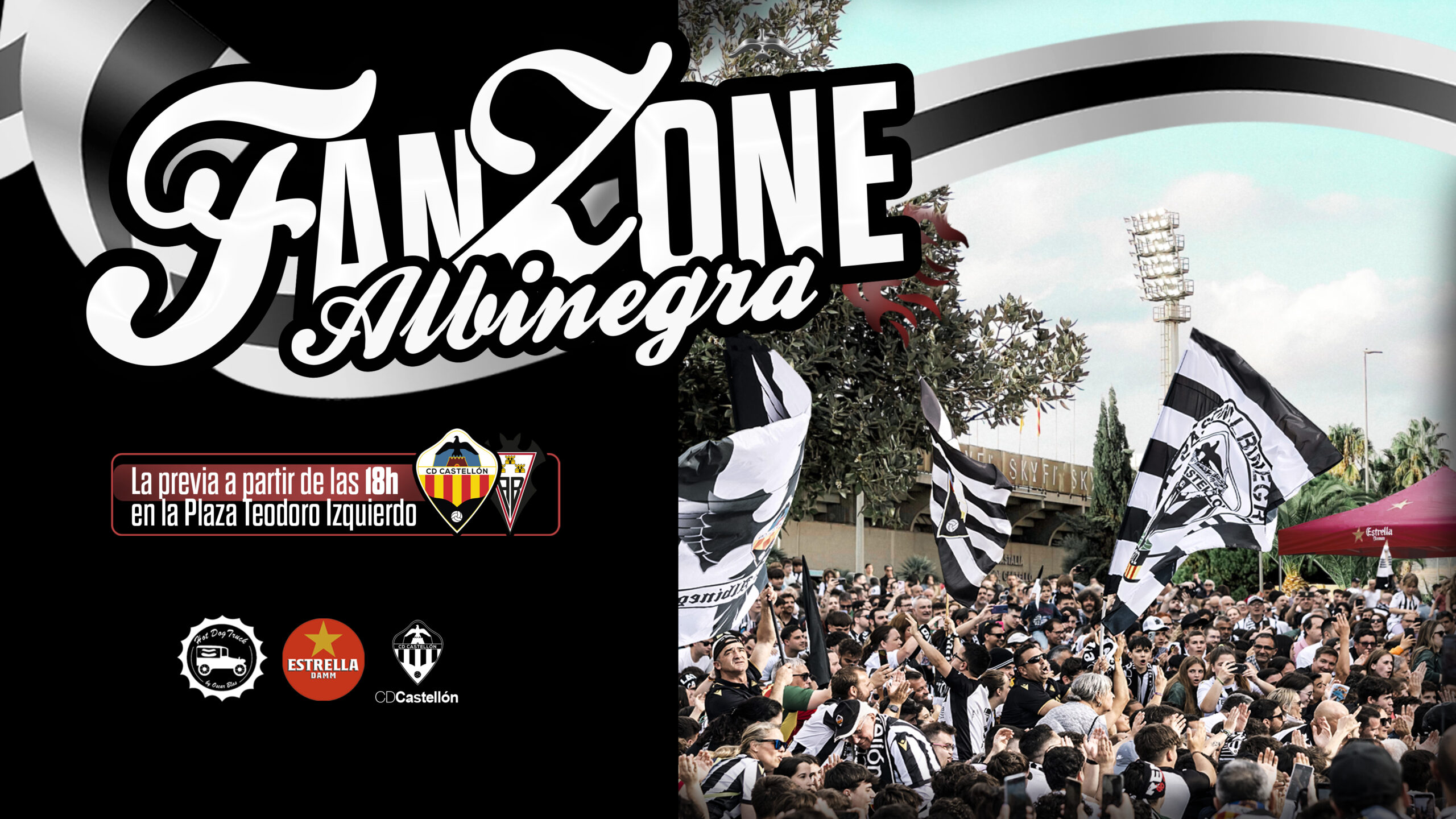 En la Fan Zone by Hot Dog Truck y Estrella Damm habrá actividades como pintacaras y una variada oferta gastronómica para disfrutar del ambiente previo al encuentro, además de productos de la Tenda Albinegra que podrán ser adquiridos por los aficionados.