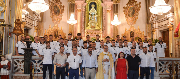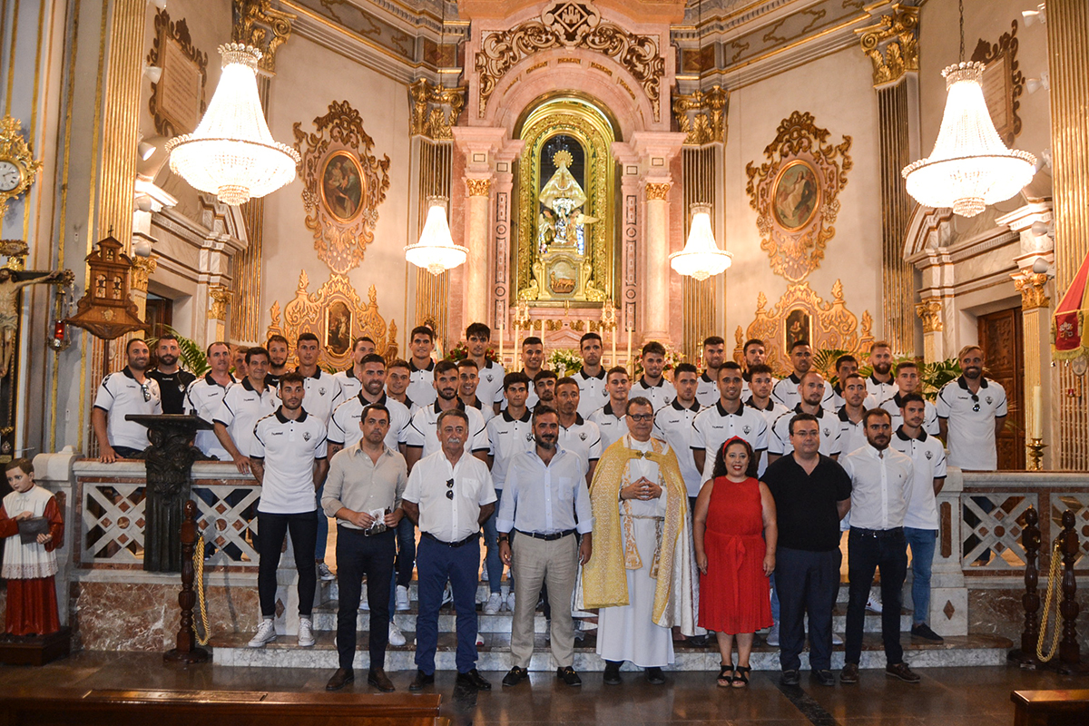 La plantilla del CD Castellón -jugadores y cuerpo técnico- y la directiva albinegra visitaron este viernes, tal y como estaba previsto, la Basílica de la Mare de Déu del Lledó para cumplir con la tradición realizar una ofrenda a la ‘Lledonera’ antes de que arranque la Liga.