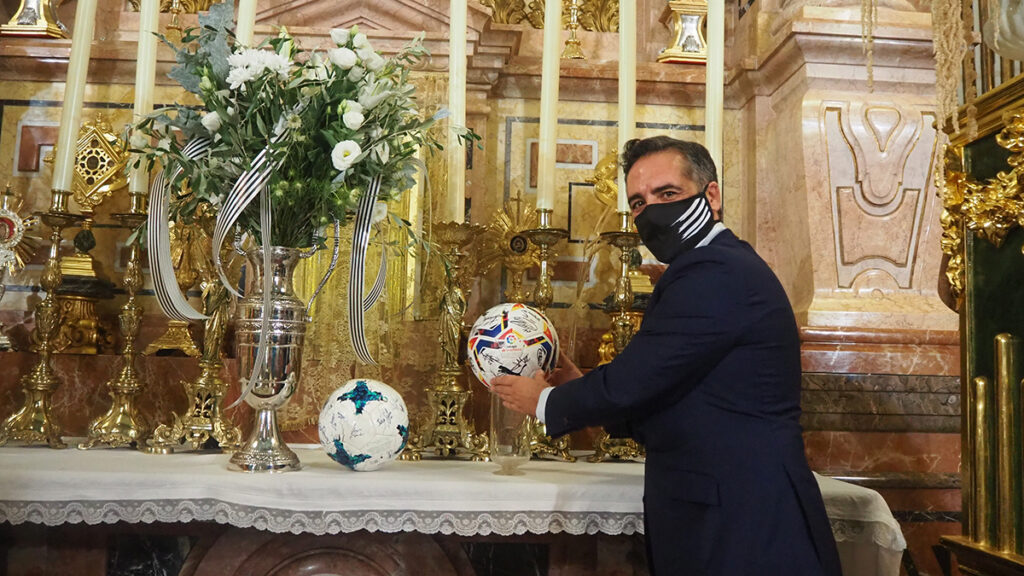La visita, que se realizó cumpliendo las medidas sanitarias y de higiene debido a la Covid-19, tuvo un carácter muy emotivo como viene siendo habitual. El presidente del CD Castellón, Vicente Montesinos, depositó un balón firmado por toda la plantilla tras conseguir el ascenso a LaLiga SmartBank, que ya reposa en el altar de la basílica junto al balón del ascenso a Segunda B. Por su parte, el prior de Lledó, Josep Miquel Francés, leyó testimonios de varias visitas previas a Lledó, una fecha señalada en el calendario albinegro antes de iniciar la Liga en Castalia.