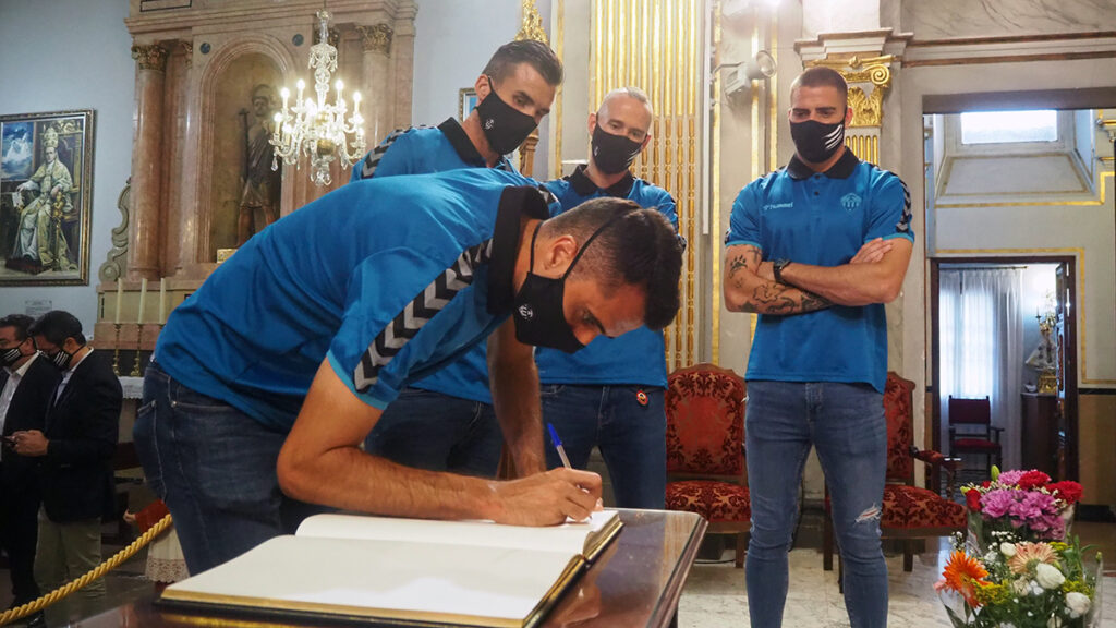 El CD Castellón ha realizado la tradicional visita a la Basílica de la Mare de Déu del lledó, patrona de la ciudad de Castellón, en la jornada previa al estreno de los albinegros en Castalia en LaLiga SmartBank, frente al Málaga.