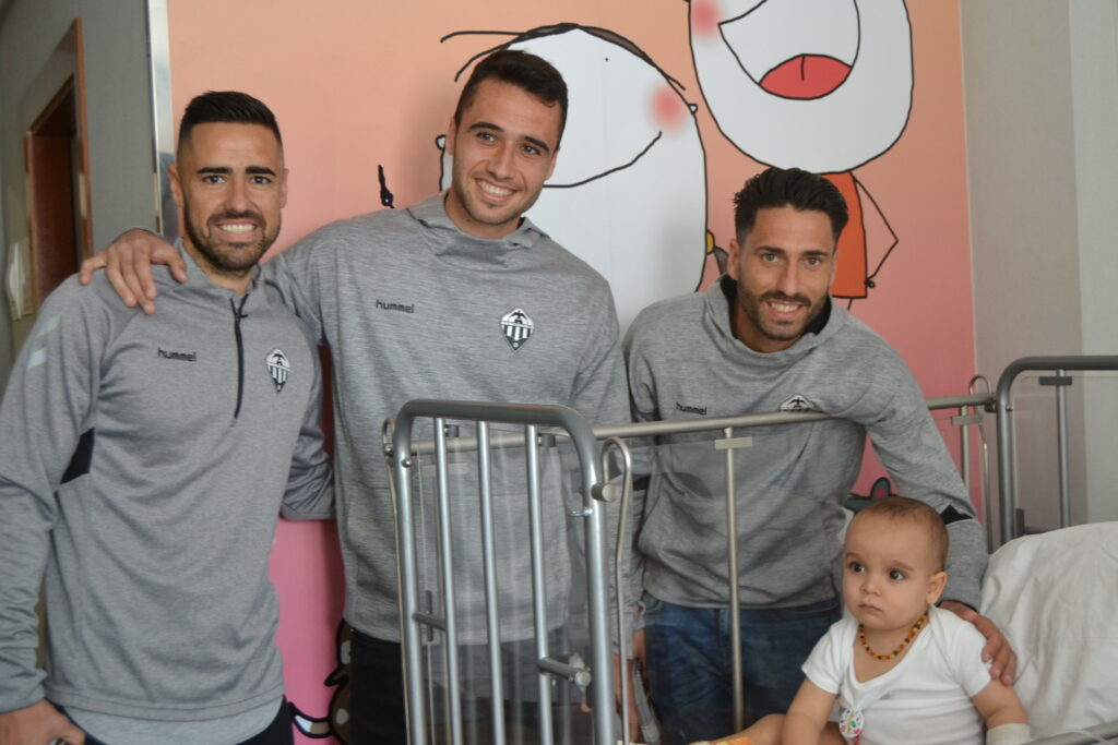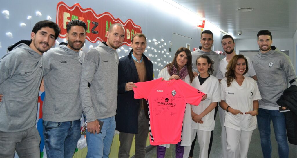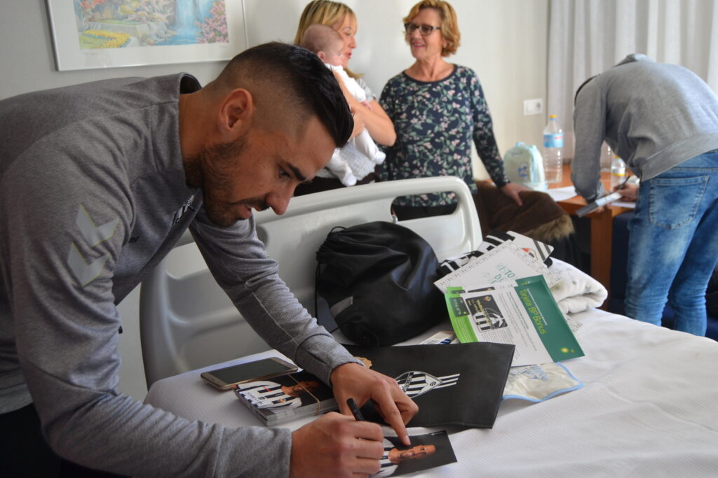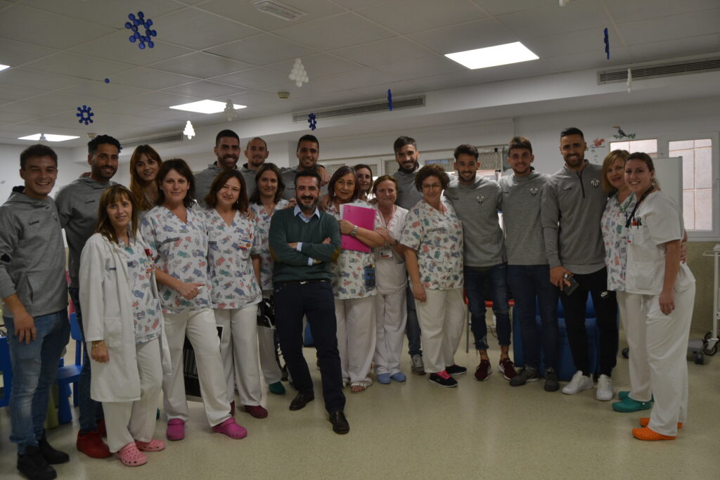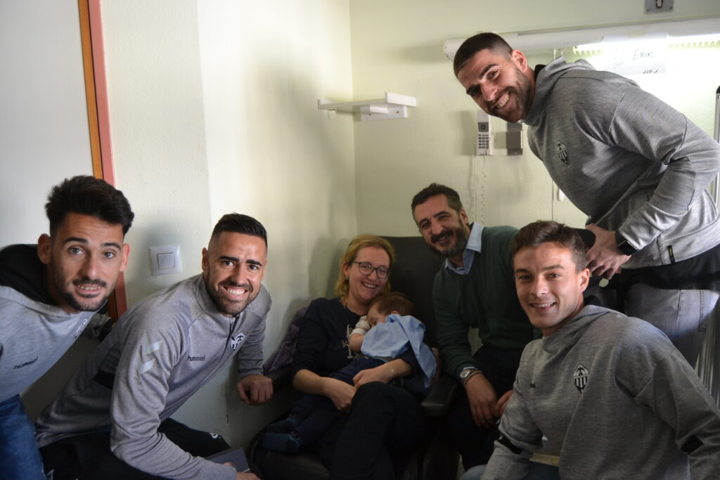 Posteriormente, el ‘tour’ ha continuado con la presencia de estos tres futbolistas, a los que se les han sumado el presidente del CD Castellón, Vicente Montesinos, así como los jugadores Marc Castells, Joseba Muguruza, Juanma Acevedo, Rafa Gálvez, Carlos Delgado, Luismi Ruiz y Álvaro Campos. Todo ellos han puesto rumbo al Hospital General para sacar sonrisas a los niños y niñas hospitalizados en la planta de pediatría del centro.