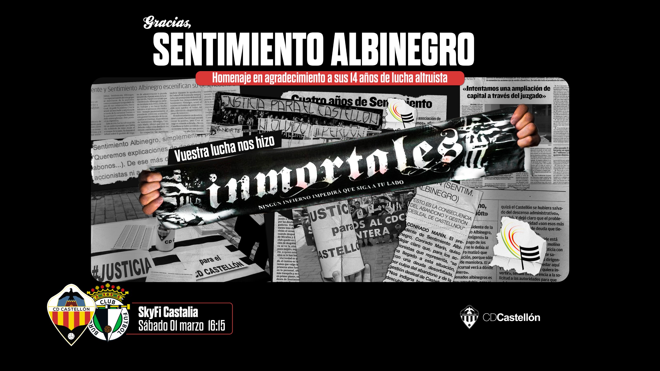 El CD Castellón invita a todos los aficionados a asistir al partido y unirse a este merecido homenaje, celebrando juntos la labor y el compromiso de ‘Sentimiento Albinegro’ en la defensa y promoción de los valores albinegros.