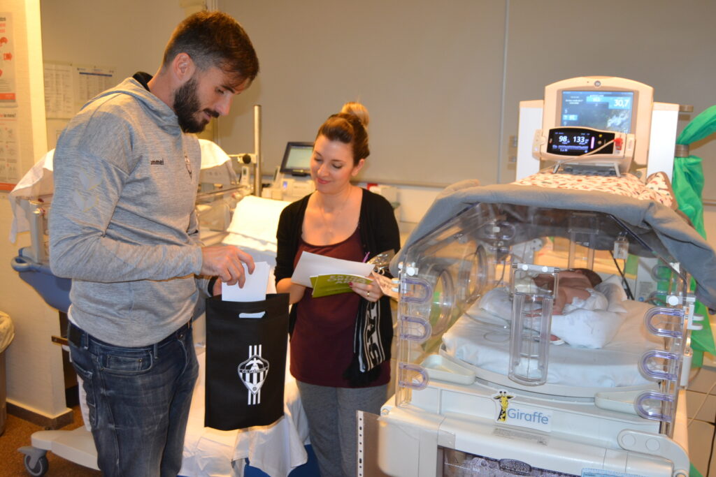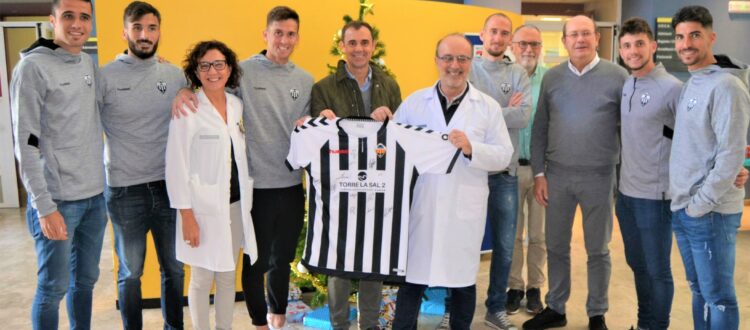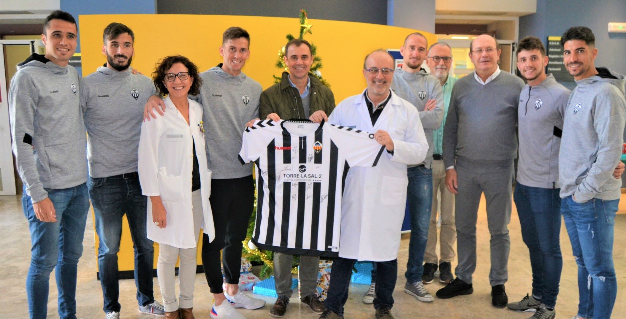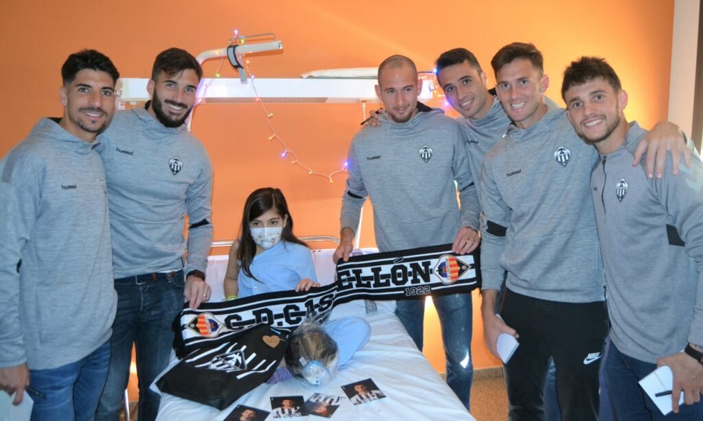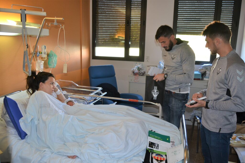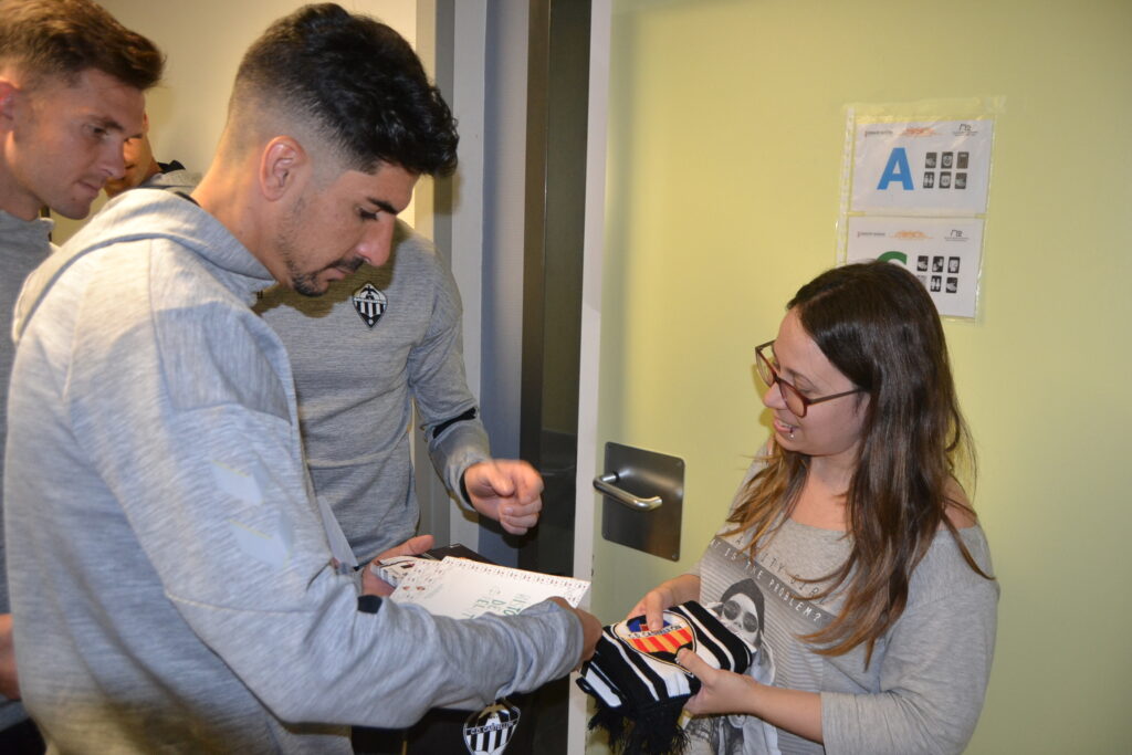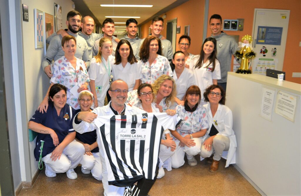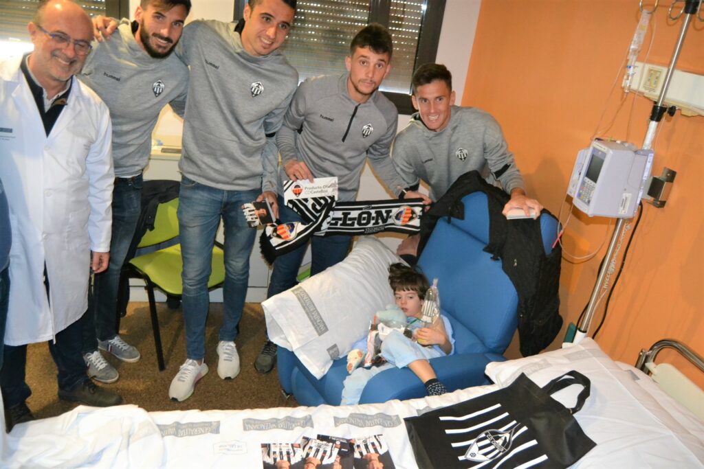 El CD Castellón ha visitado este mediodía el Hospital Universitario de La Plana de Vila-real para fomentar el albinegrismo entre los hospitalizados del centro.