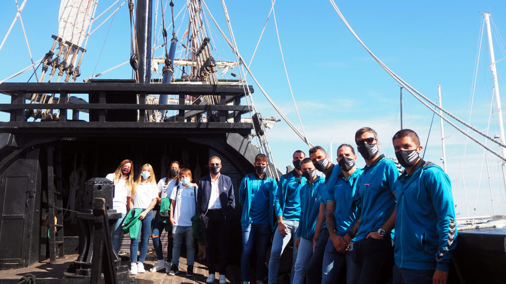 El CD Castellón ha visitado este lunes ‘Escala a Castelló’, la exposición de las embarcaciones históricas Nao Victoria y Galeón Andalucía que pueden disfrutarse estos días en el Puerto Azahar del Grao.