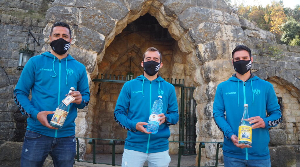 Los jugadores del primer equipo Paco Regalón, Rubén Díez y Jorge Fernández se han desplazado este martes a la localidad de Benassal, al norte de la provincia de Castellón, para visitar los orígenes de Agua de Benassal, patrocinador oficial del CD Castellón y agua oficial que beben los albinegros.