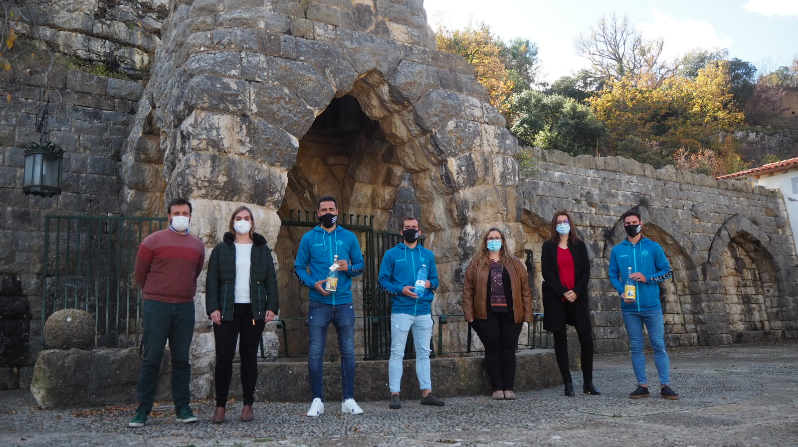 Los tres jugadores del CD Castellón, acompañados por el personal de la empresa, han visitado el manantial Font d’En Segures en la localidad de l’Alt Maestrat para comprobar de primera mano el origen de Agua de Benassal y cómo es el proceso de filtrado y embotellado.