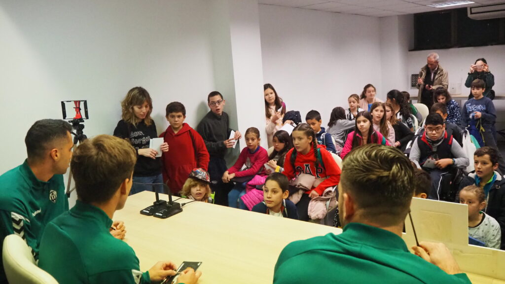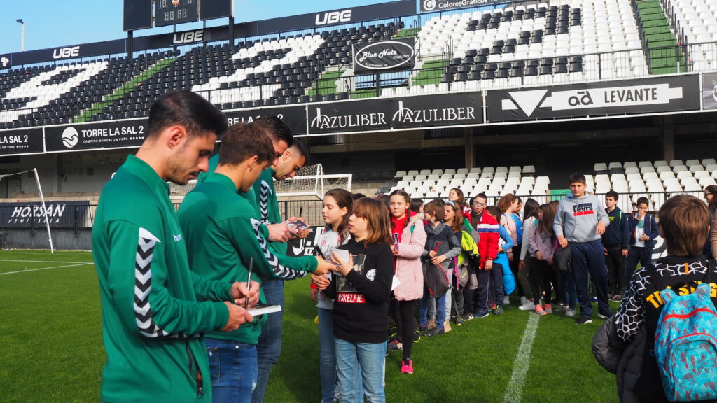 A la celebración no ha podido faltar la presencia de cuatro jugadores determinantes del combinado liderado por Óscar Cano. David Cubillas, Joseba Muguruza, Rafa Gálvez y Jorge Fernández han acompañado a los jóvenes aficionados albinegros durante la visita, además de firmar autógrafos y hacerse fotografías. Incluso los más pequeños han podido ejercer de periodistas por un día en la sala de prensa de Castalia. Sin duda, no ha habido mejor forma de celebrar estos diez desempeñando una función excelente en el ámbito educativo.