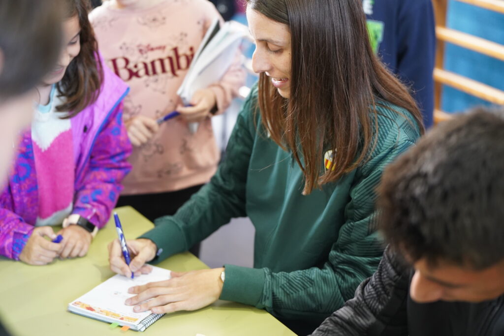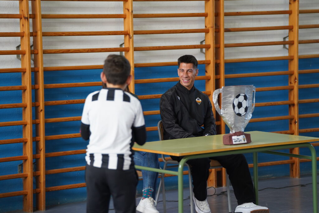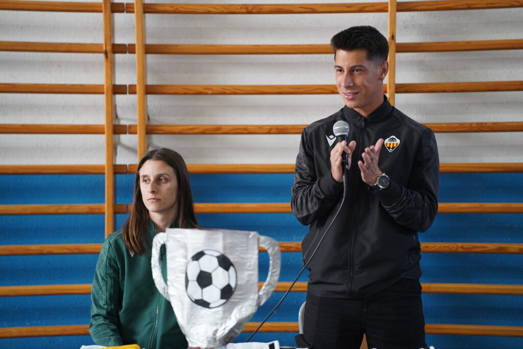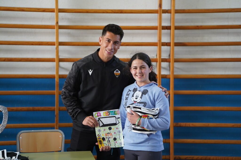 El futbolista del CD Castellón, Dani Villahermosa, y la capitana del CD Castellón Femenino, Aida Samit, han visitado esta semana el CEIP Isabel Ferrer con motivo de los IV premios Pam Pam Orellut.
