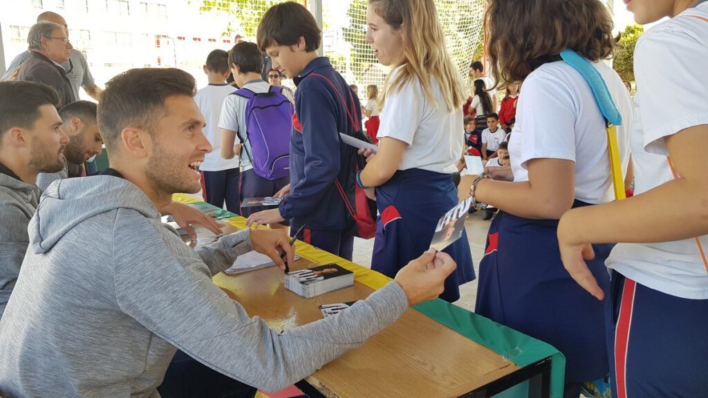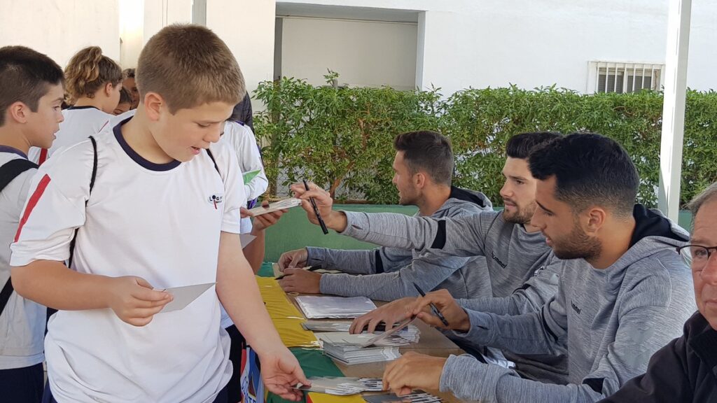 Si hace dos semanas fueron los futbolistas Sergi Montoliu y Carlos Panadés al Bernat Artola, los alumnos del Liceo han recibido la visita hoy de David Cubillas, Carlos Delgado y Eneko Satrústegui. El centro ha acogido con los brazos abiertos a los jugadores y han aprovechado su estancia para compartir sus experiencias en albinegro, hacer entrega de los premios a los mejores dibujantes del centro y firmar autógrafos, con un almuerzo para acabar con buen sabor de boca.