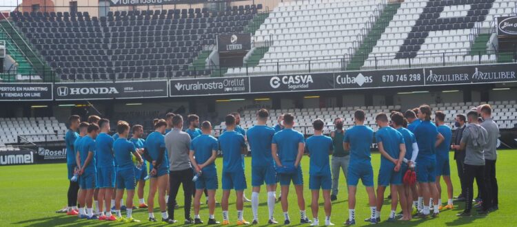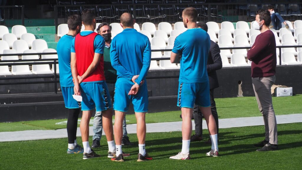 El presidente del CD Castellón, Vicente Montesinos, ha seguido el entrenamiento del equipo de este sábado en Castalia. Al finalizar, ha bajado al césped para saludar a los capitanes y el resto del grupo y darles un mensaje de ánimo, apoyo y fuerza de cara al partido del próximo lunes frente al CF Fuenlabrada, otro partido importante para conseguir los objetivos.