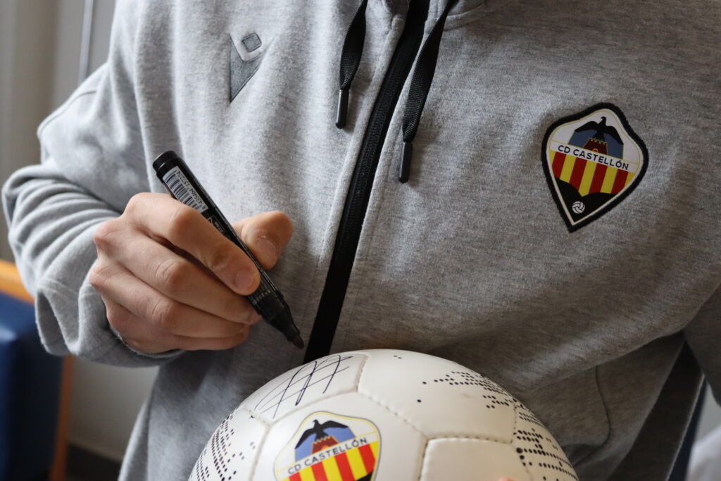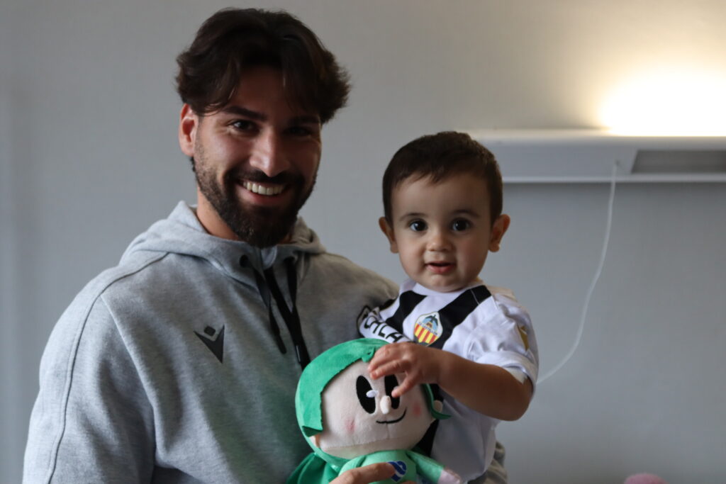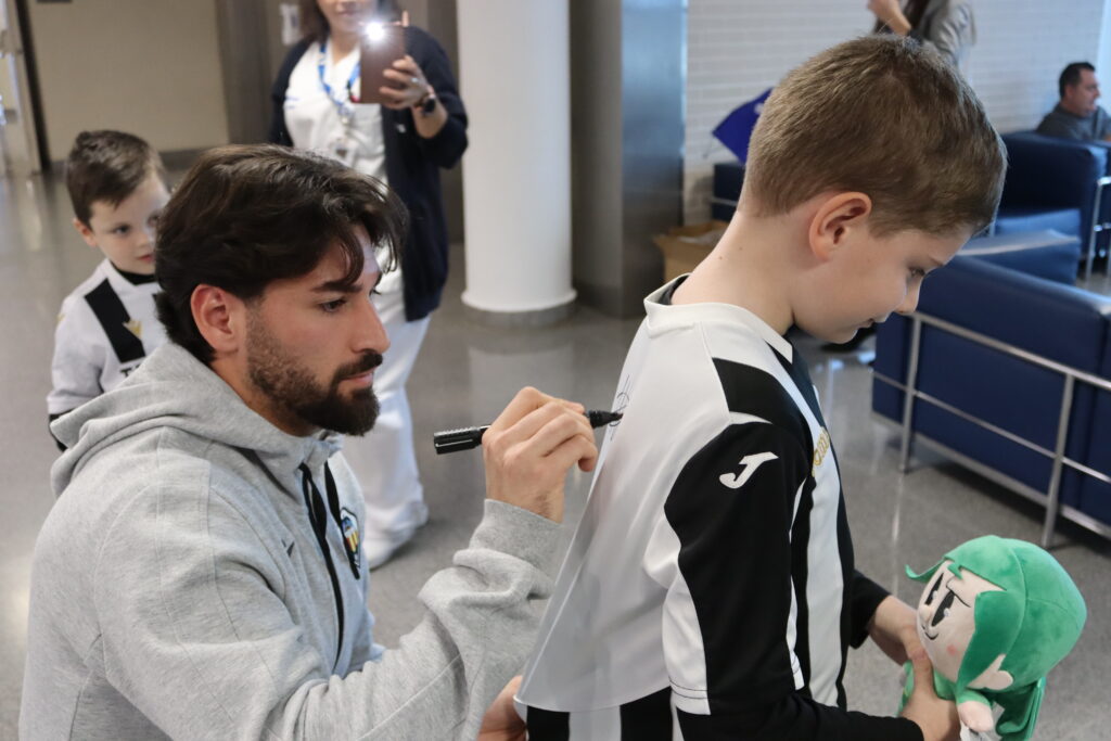 El guardameta del elenco orellut, tras finalizar el entrenamiento en la Ciudad Deportiva Marina d’Or, ha estado presente en el Hospital Vithas Castellón para dar ánimos a los pacientes más pequeños y fotografiarse también con los familiares allí presentes.