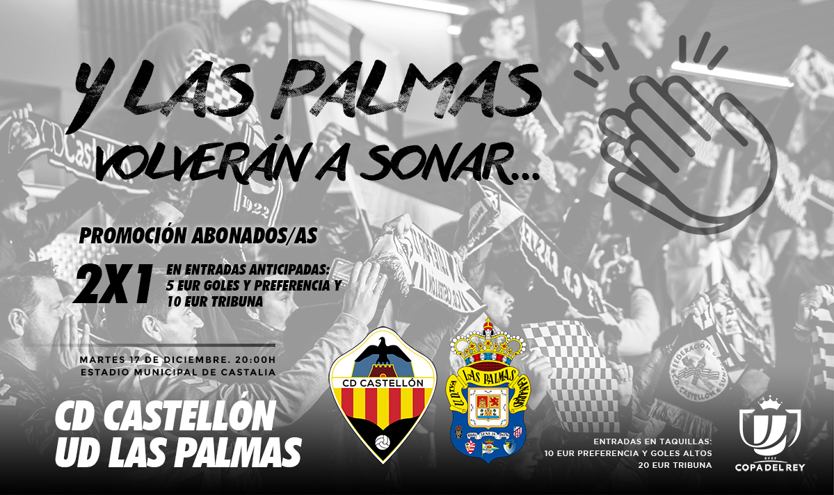 El próximo martes 17 de diciembre a las 20.00 horas el CD Castellón se mide ante la UD Las Palmas en Castalia, en el partido correspondiente a la eliminatoria de Copa del Rey.