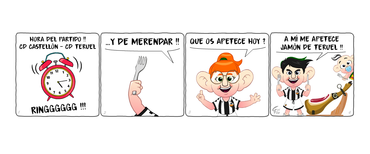 A pocas horas de comenzar el encuentro ante el CD Teruel, el CD Castellón solo tiene en mente ganar. Magdalena recuerda que también es hora de merendar pero Pam Pam y Orellut no pueden dejar de pensar en el partido, de modo que quieren jamón de Teruel para no perder el sabor de boca del partido.