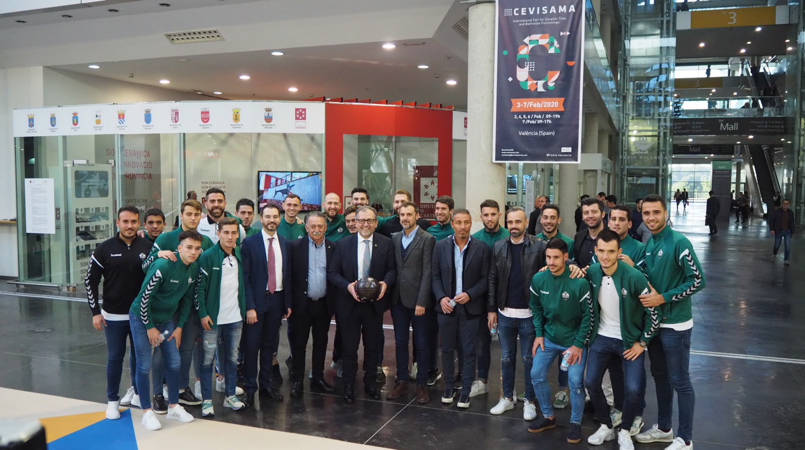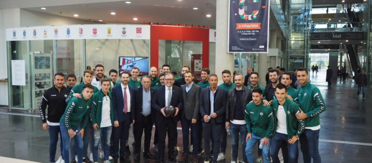 La visita del CD Castellóna Cevisama dio para mucho. La plantilla albinegra acompañó también a la Diputació de Castelló en su stand, donde el primer equipo fue recibido por el presidente de este organismo, Josep Martí, quien felicitó a los ‘orelluts’ por la gran temporada que están haciendo.