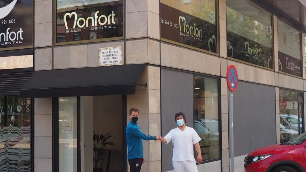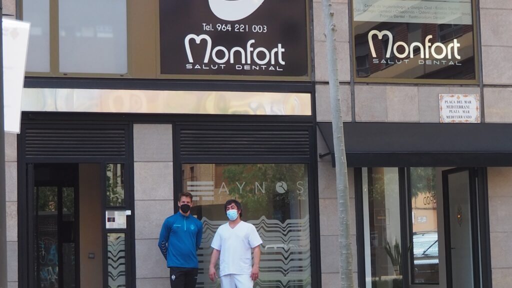 La clínica Salut Dental Monfort, 12 años cuidando la sonrisa de sus clientes en pleno centro de la ciudad, cumple su cuarta temporada consecutiva como patrocinador de la entidad, un vínculo que, en palabras del Dr. Diego Monfort, “es todo un honor. Llevo muy dentro al CD Castellón, no es solo un patrocinador, comencé hace cuatro años cuando el club necesitaba el apoyo y desde entonces no me puedo desvincular porque me siento parte de ellos, me cuesta las canas, pero es todo un orgullo”.