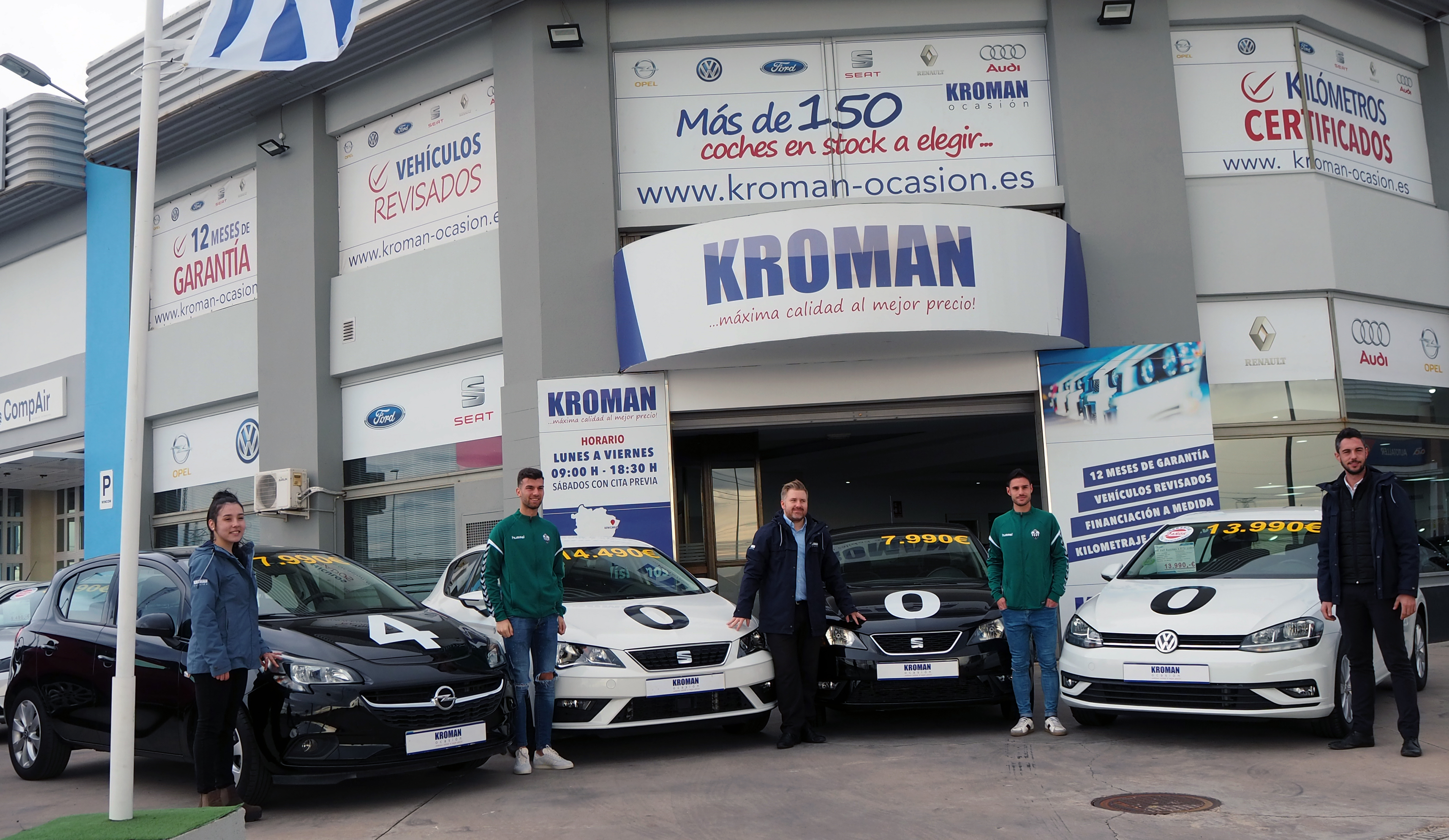 Los jugadores del CD Castellón Jorge Fernández y Josep Calavera han visitado Kroman Ocasión, patrocinador oficial del club por segundo año consecutivo, para celebrar que el concesionario ha alcanzado la vertiginosa cifra de 4.000 seguidores en redes sociales.