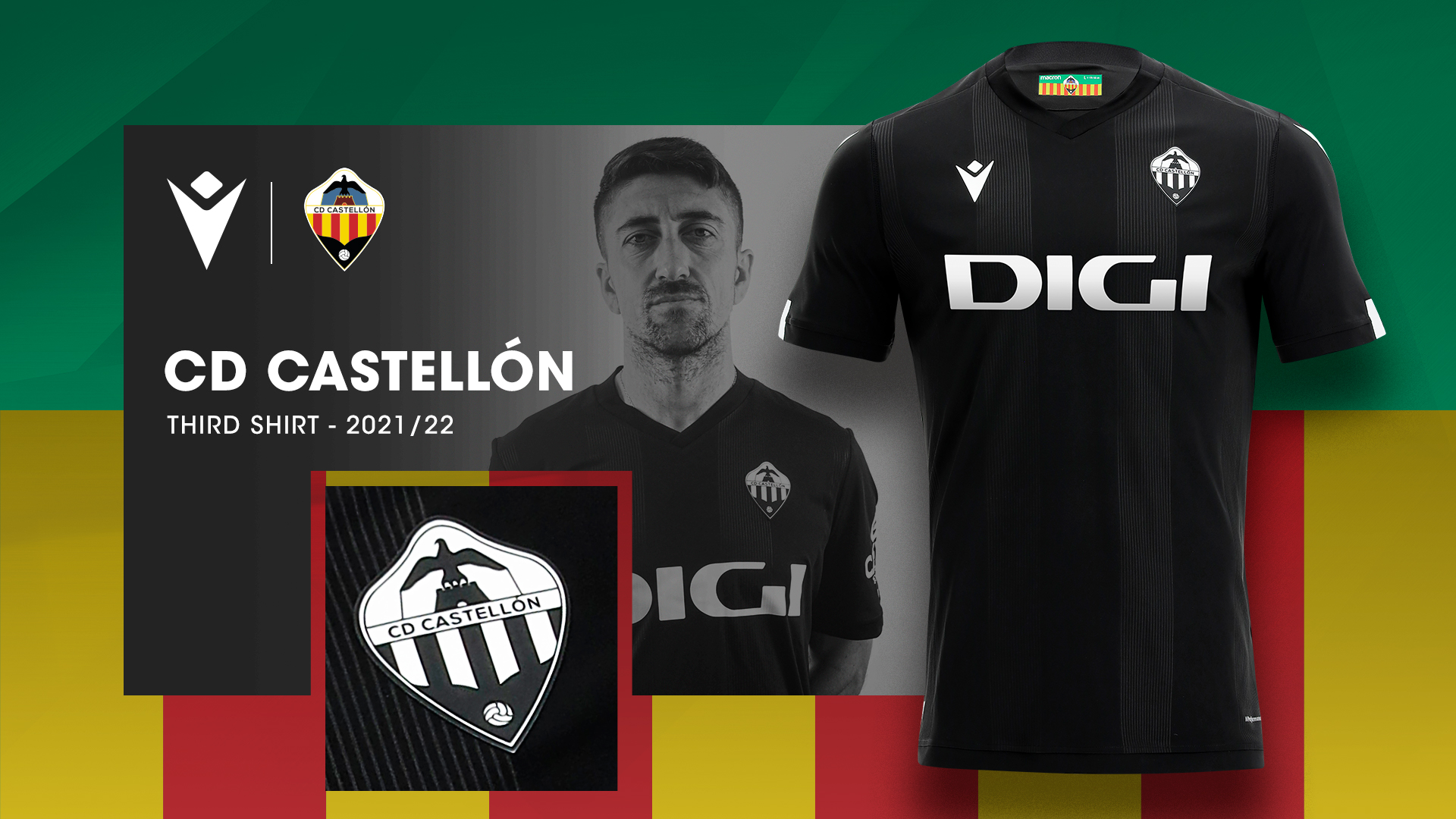 Pocos días después de haber anunciado su colaboración, el CD Castellón y Macron desean hacer pública la tercera equipación para la presente temporada, de color totalmente negro. Con cuello en forma de V, la elegante nueva camiseta, que será estrenada por el equipo este mismo jueves en el primer amistoso de la pretemporada, ante el Benigànim, presenta en su diseño una serie de finas rayas verticales en relieve sobre el fondo negro de la tela. La parte trasera del cuello está personalizada con el escudo del Castellón y los colores de la bandera de nuestra provincia. El logotipo de Macron está impreso en silicona en color blanco, al igual que el escudo del CD Castellón, para destacar sobre el fondo negro.