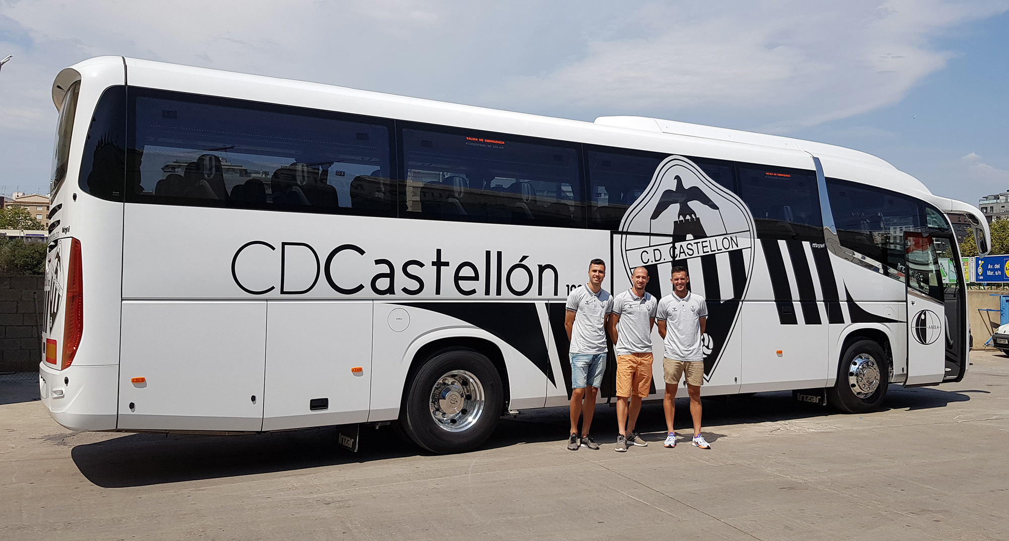 Los capitanes del CD Castellón, David Cubillas, Marc Castells y Carlos Delgado, han visitado esta mañana la sede de Autos Mediterráneo en la capital de La Plana. Los jugadores albiegros han podido comprobar de primera mano las prestaciones que ofrece el nuevo ‘Air Force One’ albinegro, que les llevará esta temporada a desplazamientos más largos tras el ascenso a Segunda B. El nuevo ‘1922’, pues, ultima su puesta a punto para acompañar por primera vez a los ‘orelluts’ dentro de varias semanas.