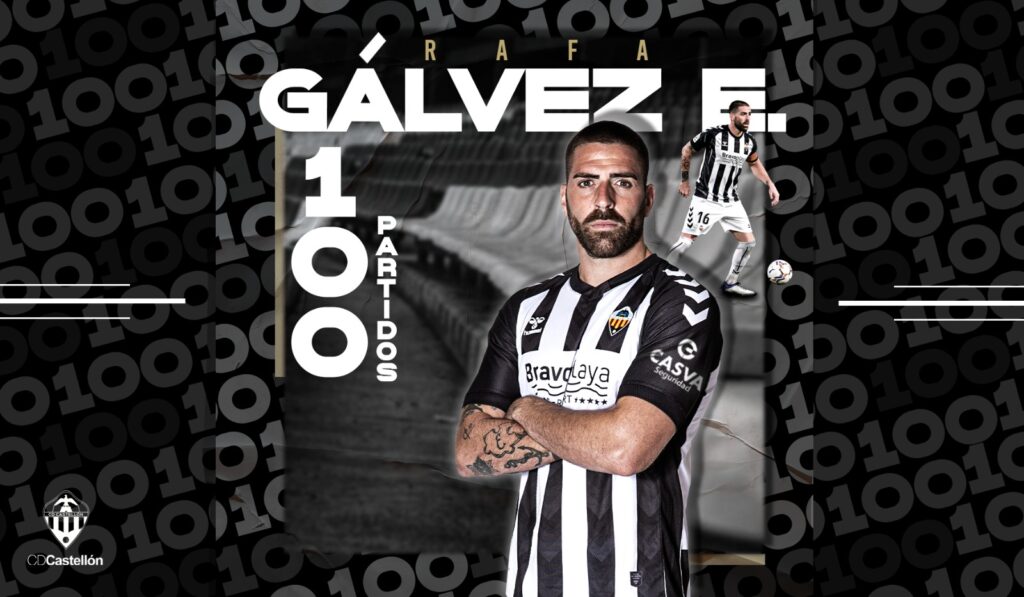 A sus 27 años, Rafa Gálvez ha entrado en el prestigioso ‘Club de los 100’. No es fácil alcanzar la cifra de cien partidos oficiales como jugador del CD Castellón, en la plantilla actual sólo la han logrado previamente los capitanes Cubillas, Álvaro Campos y Marc Castells que le han arropado para inmortalizar el momento, pero desde que llegó al club en julio de 2018 sintió una conexión especial, la que le ha llevado a darlo todo cada día que se enfunda la elástica albinegra y ser uno de los ejemplos a seguir en el vestuario.