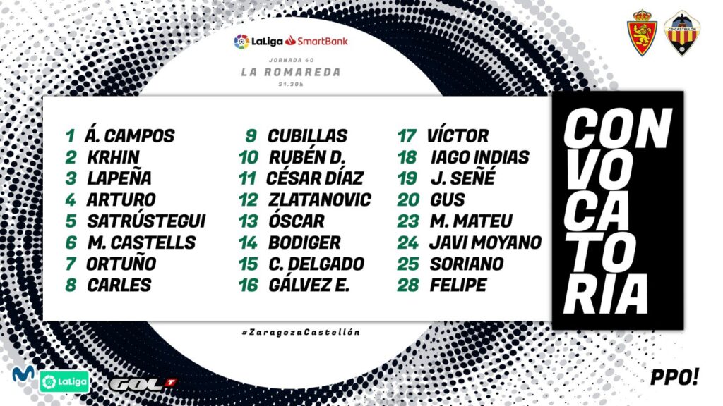 Real Zaragoza vs. CD Castellón (21:30 horas)