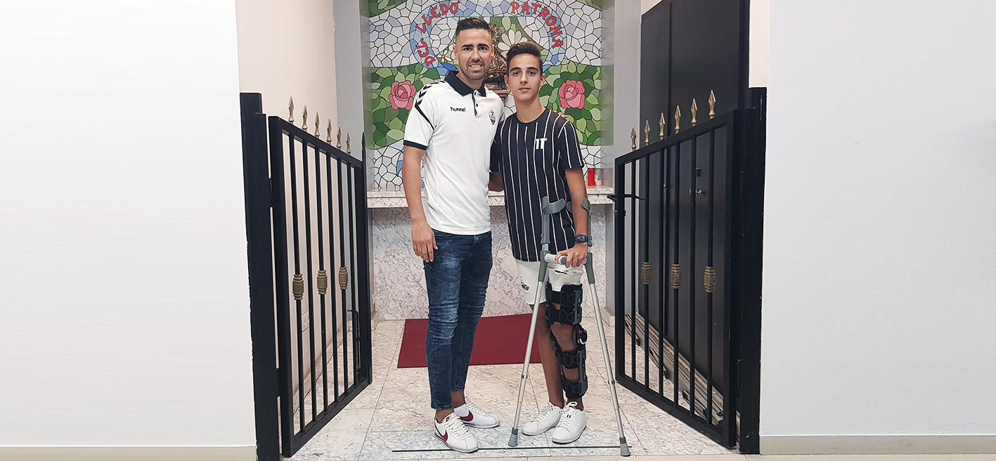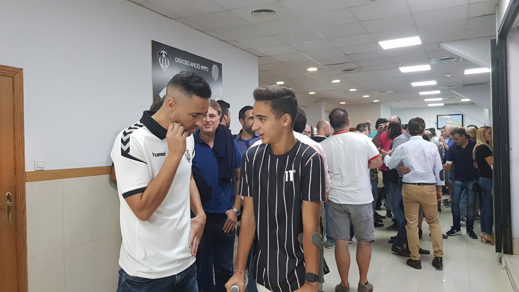 El defensa albinegro Paco Regalón y el futbolista del Cadete B del CD Castellón Fernando Peña, más conocido como ‘Nando’, se conocieron el pasado domingo, antes del encuentro ante la SD Ejea. Ambos jugadores del CD Castellón, que disfrutaron juntos de la octava jornada de la Liga en el palco del Estadio Municipal de Castalia, sufren la misma lesión, concretamente una rotura del ligamento cruzado anterior de la rodilla izquierda. El zaguero animó y transmitió su apoyo al jugador de la Fundació Albinegra.