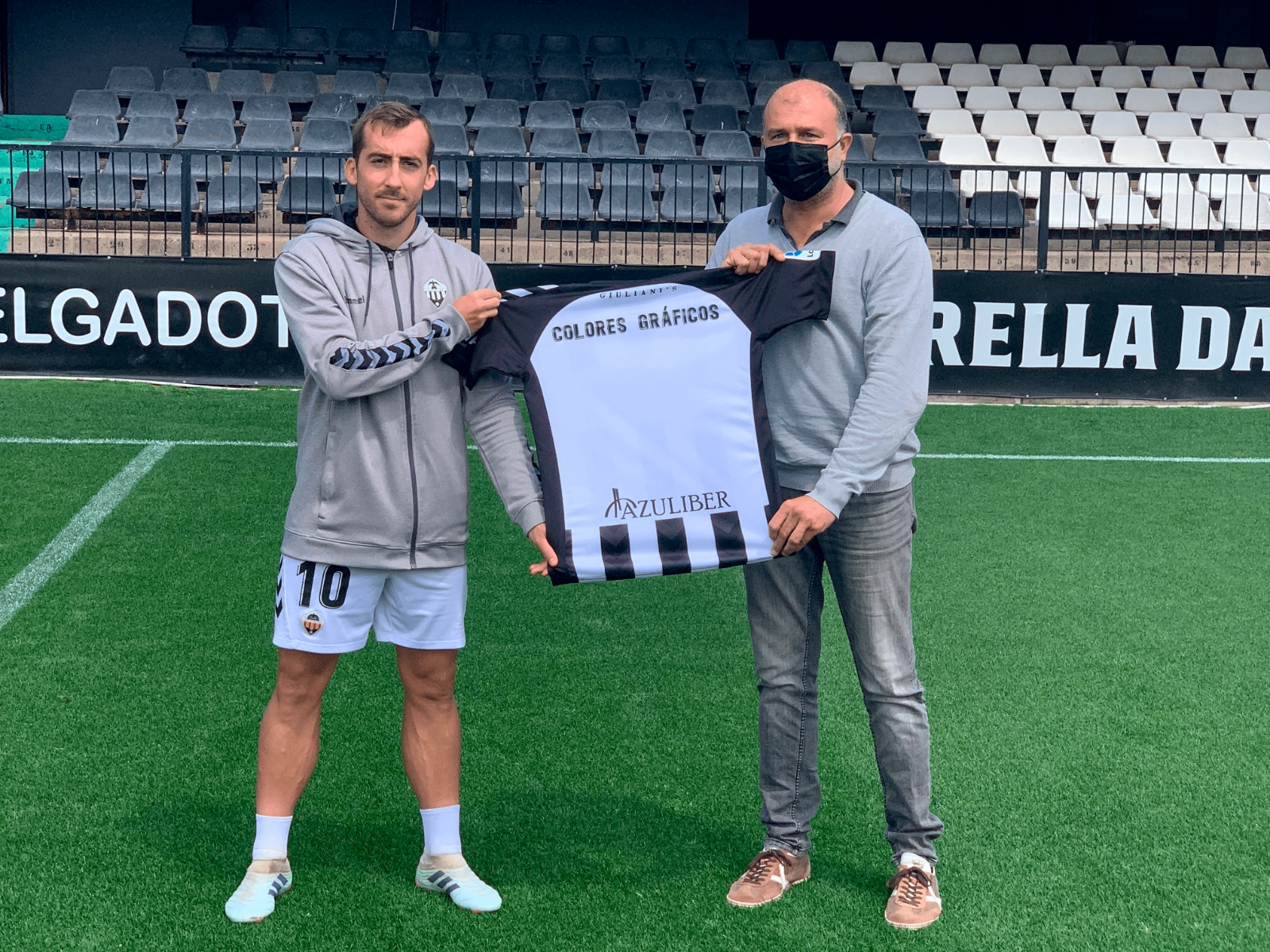 El CD Castellón solo piensa en conseguir este domingo en Castalia frente a un rival directo como el Logroñés su 12ª victoria de la temporada, que acerque de modo importante el objetivo de seguir en LaLiga Smartbank. El máximo goleador del equipo con 7 tantos, Rubén Díez, quiere aumentar su renta anotadora pero sabe que lo más importante es el trabajo colectivo de un equipo que en el momento crucial cuenta con toda su afición, incluido el respaldo de sus patrocinadores. El futbolista aragonés, que asegura “sentirse bien” cuando sus logros personales sirven para ayudar al objetivo, recibió en Castalia a uno de los patrocinadores albinegros, COLORES GRÁFICOS, para agradecer su apoyo con el obsequio a su gerente, Javier Tirado, de una camiseta y el deseo compartido de cumplir el objetivo al final de la temporada. Y es que COLORES GRÁFICOS es un gran ejemplo de fidelidad y confianza a lo largo de los años en el proyecto del CD Castellón.
