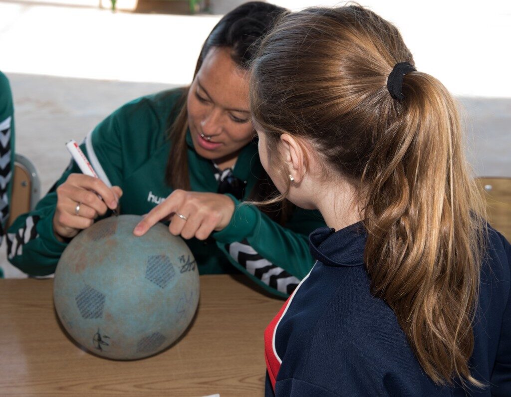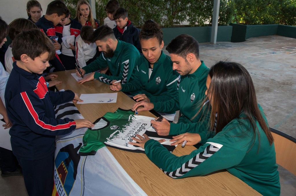 Si la semana pasada el colegio Liceo visitó Castalia para sacar el pincel en Castalia, hoy ha sido el CD Castellón quien le ha devuelto la visita. En esta ocasión, los jugadores del Primer Equipo, Eneko Satrústegui y Jorge Fernández, y las futbolistas del Joventut Almassora, Luzmery Suárez y Yannel Correa, han sido recibidos con los brazos abiertos por los alumnos de la escuela. Los futbolistas han aprovechado su estancia para compartir sus experiencias en albinegro, hacer entrega de los premios a los mejores dibujantes del centro y firmar autógrafos, con un almuerzo para acabar con buen sabor de boca.