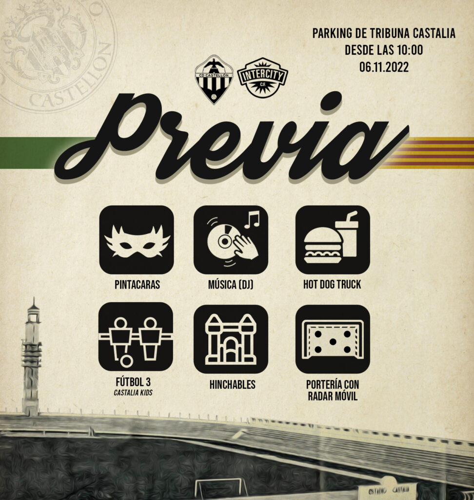 El CD Castellón se enfrenta este domingo al CF Intercity con el objetivo de mantener el liderato delante de la afición albinegra. Para ello, los pupilos de Torrecilla buscarán la sexta victoria en seis partidos en Castalia. El encuentro arrancará a las 12:00 horas, pero desde las 10:00 el club ha preparado una serie de actividades para que la afición se acerque antes al estadio y entre antes del saque inicial.