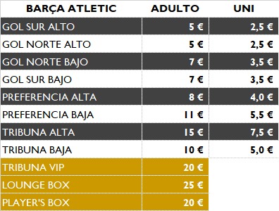 Tarifa infantil (4 a 13 años ambos incluidos): **5€ (Tribuna, Goles Altos, Goles Bajos y Preferencia).