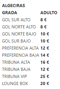 · Tarifa infantil (4 a 13 años ambos incluidos): 5€ (Tribuna, Goles Altos, Goles Bajos y Preferencia).