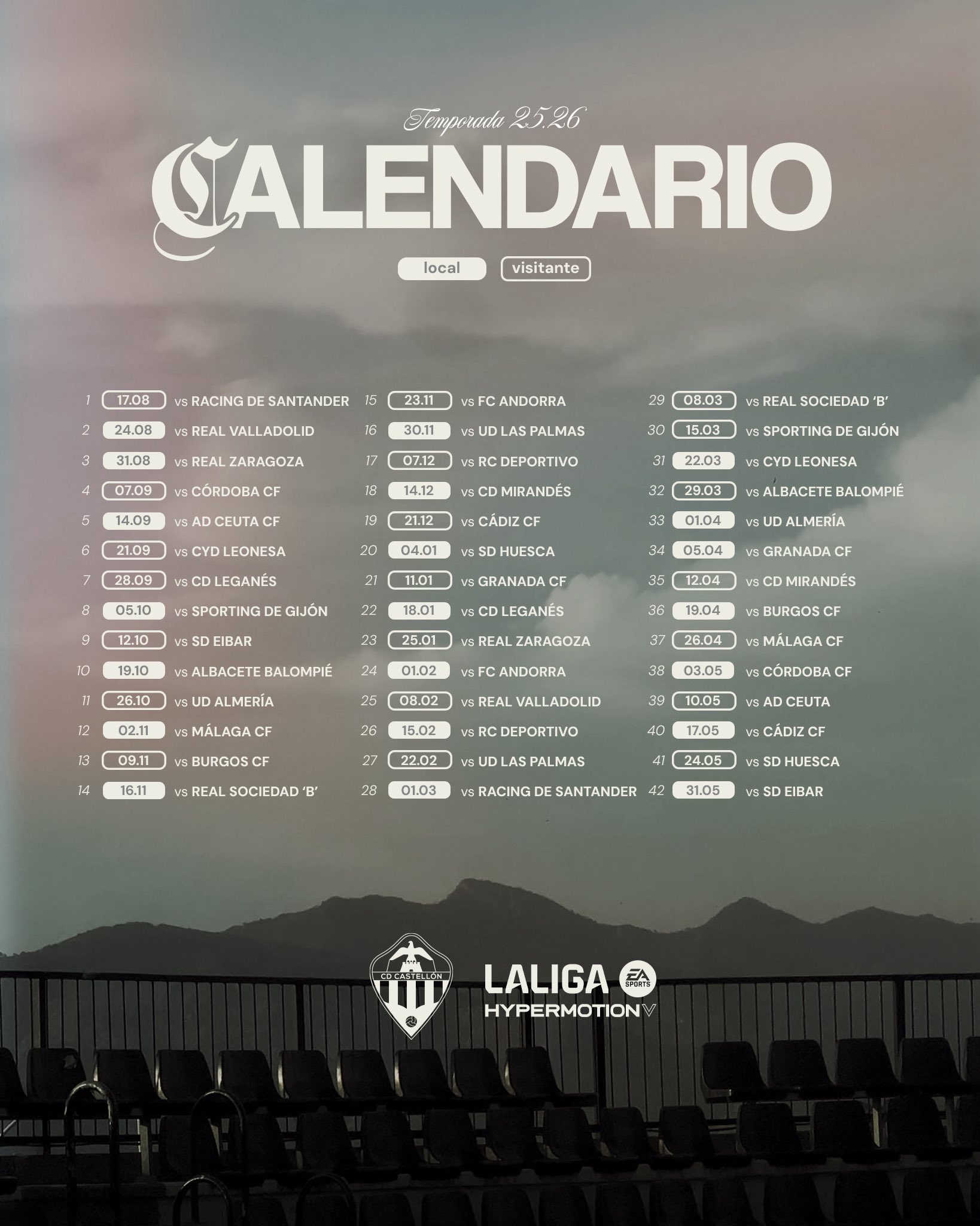 El CD Castellón ya conoce el calendario de la LaLiga Hypermotion 25-26. El formato cuenta con un calendario asimétrico de 42 jornadas.