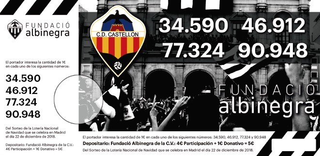 Desde esta semana, la afición ya tiene disponible en Castalia, concretamente en el local de la Fundació Albinegra (bajos del Estadio Municipal de Castalia), las papeletas para participar en esta cita con una novedad: esta vez se jugarán… ¡cuatro números!: el 34.590, el 46.912, el 77.324 y el 90.948.